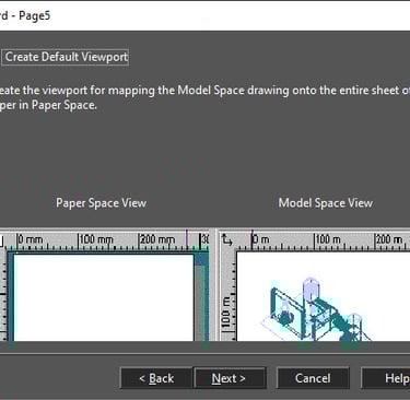 The fifth page enables you to create a default viewport for mapping the Model Space drawings onto the paper sheet as defined in Paper Space. When printing the default viewport from Paper Space, you get a hard copy of the Plan view of the current drawing because the Plan view is the default view for Model Space.